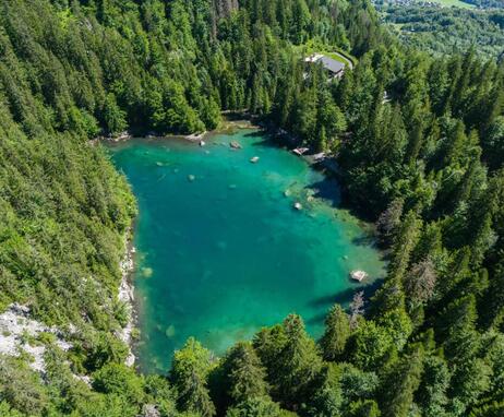 Niché à 1 200 m d'altitude, le Lac Vert offre des eaux émeraude d'une transparence rare, bordées d'épicéas. Reflet du Mont Blanc, ce site naturel classé est idéal pour une balade paisible dans un cadre préservé