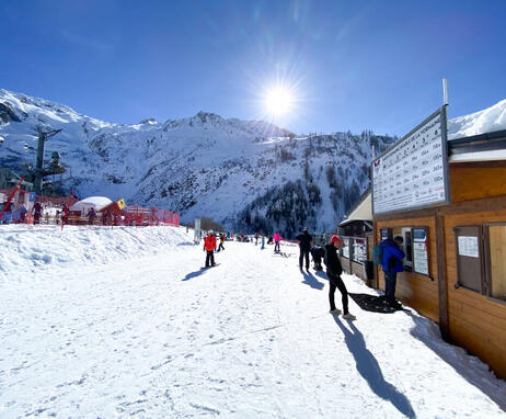 Retrouvez aussi un coin restauration avec une grande terrasse, pour profiter du soleil et de la vue sur le glacier et les massifs.