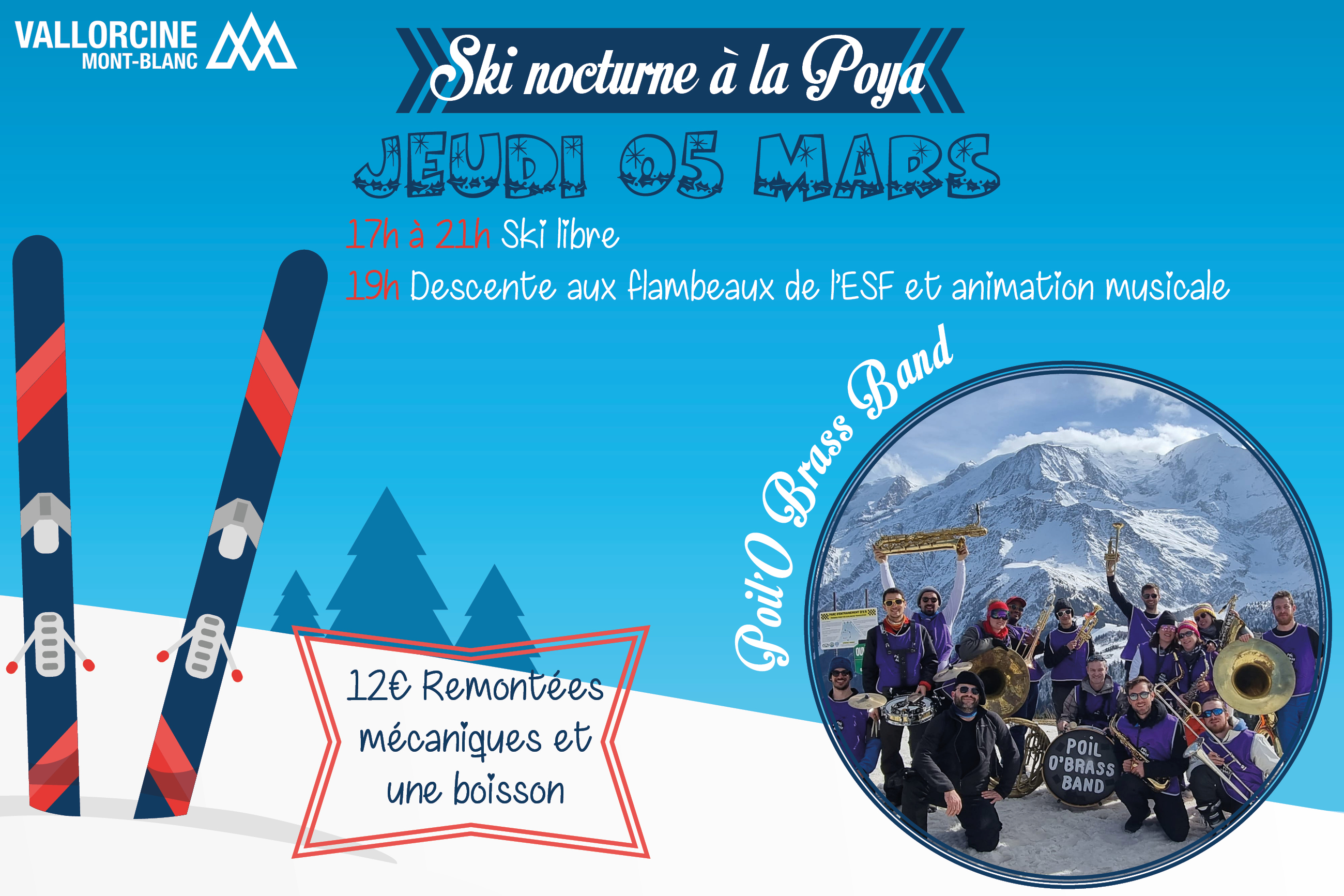 Tous les jeudis des vacances scolaires, venez skier en nocturne à La Poya.
