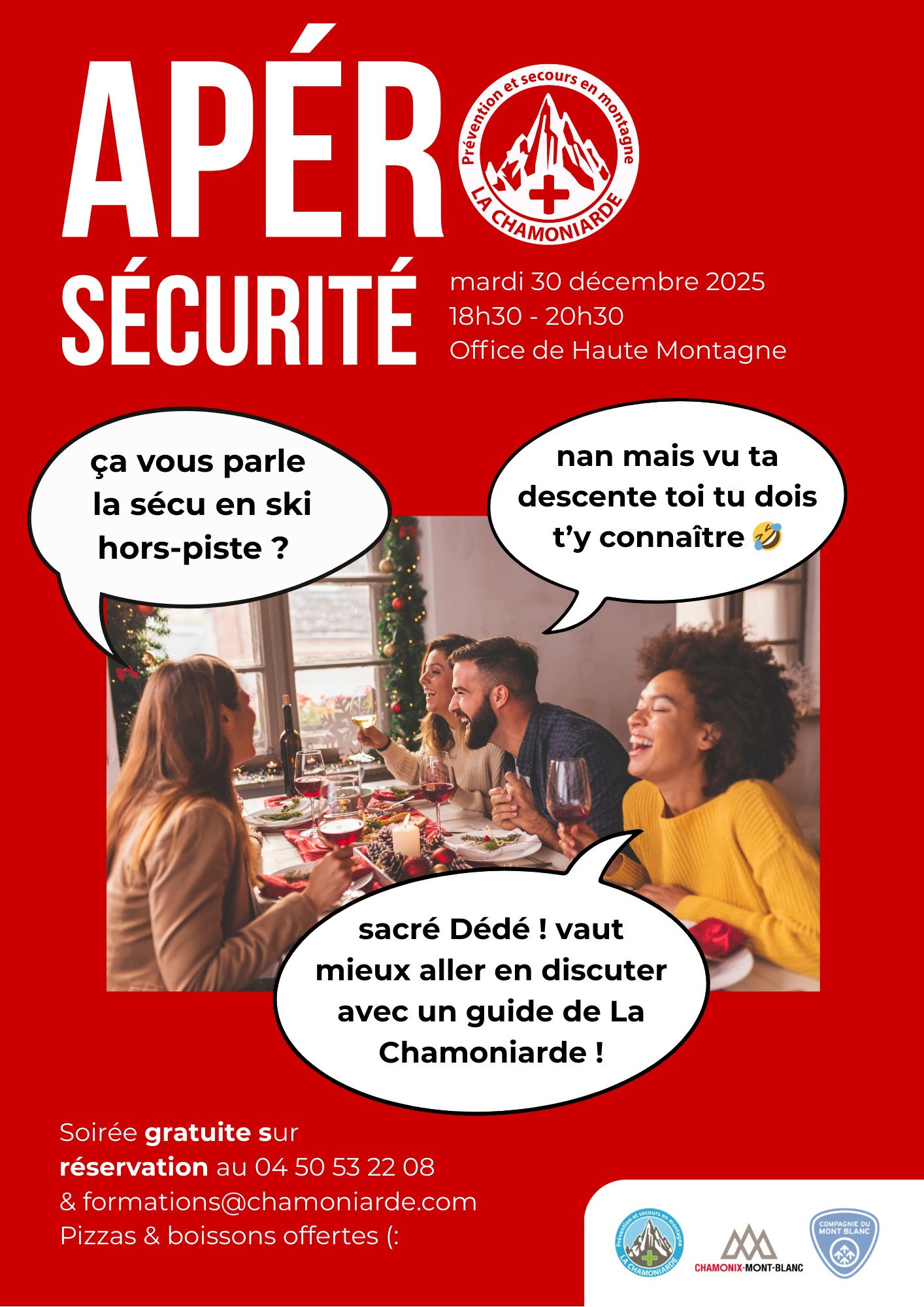 Grande première Nouveau format de l'hiver, les "apéro sécu" de la Chamoniarde. Echange avec nos guides formateurs sur les différents thèmes de la sécurité en ski et en montagne. Discussion autour de la sécurité en hors-piste.