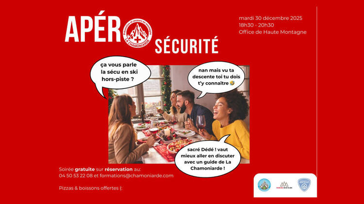 "L’hiver est là et l’envie de rider hors-piste te titille ? Tu n'es pas totalement sûr·e de tes compétences en sécurité ? Bonne nouvelle: cet hiver, la Chamoniarde lance ses soirées Apéro Sécurité : échanges avec nos guides formateurs autour de la sécurité en montagne… et d’un apéro offert!