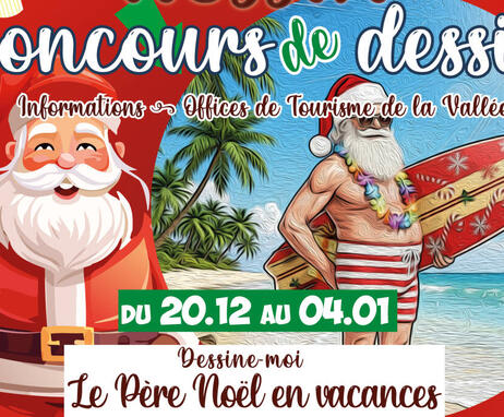 Un concours rien que pour ces chers bambins sur le thème : « Dessine-moi le Père Noël, en vacances après sa tournée de distribution de cadeaux ».