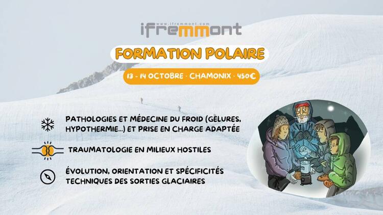 Au programme : pathologies du froid (hypothermie, gelures, noyades en eaux froides) ; traumatologie en situations extrêmes ; gestes de secours adaptés à l'environnement polaire ou glaciaire ; télémédecine (conseils à distance, gestion d’un blessé isolé) ; pharmacologie ; préparation technique d’une sortie sur la glace (moyens de communication (VHF, satellite), orientation (GPS), choix du matériel de sécurité...).