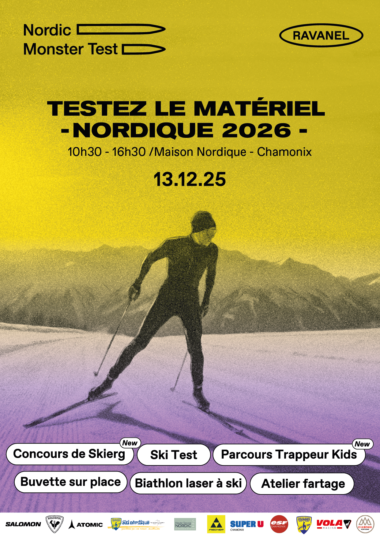 TESTEZ GRATUITEMENT LE MATÉRIEL Nordique HIVER 2026 Au programme : -> Ski test -> Parcours trappeur kids -> Fartage & préparation de skis -> Concours de skierg lots à gagner -> Buvette sur place