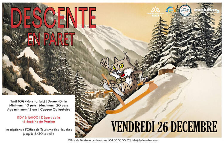 Inscription et règlement obligatoire à l'Office de Tourisme des Houches : + 33 (0)4 50 55 50 62, jusqu’à la veille 18h30 - minimum 10 pers. / maximum 20 pers.