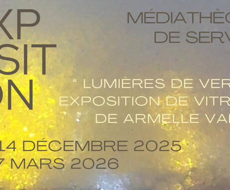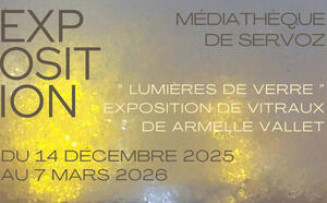 Décors verriers en montagne : façonner, sculpter la lumière... Spécialiste des vitraux à la dalle de verre, Armelle Vallet, vitrailliste, exposera ses œuvres à la médiathèque de Servoz du 14 décembre 2025 au 7 mars 2026.