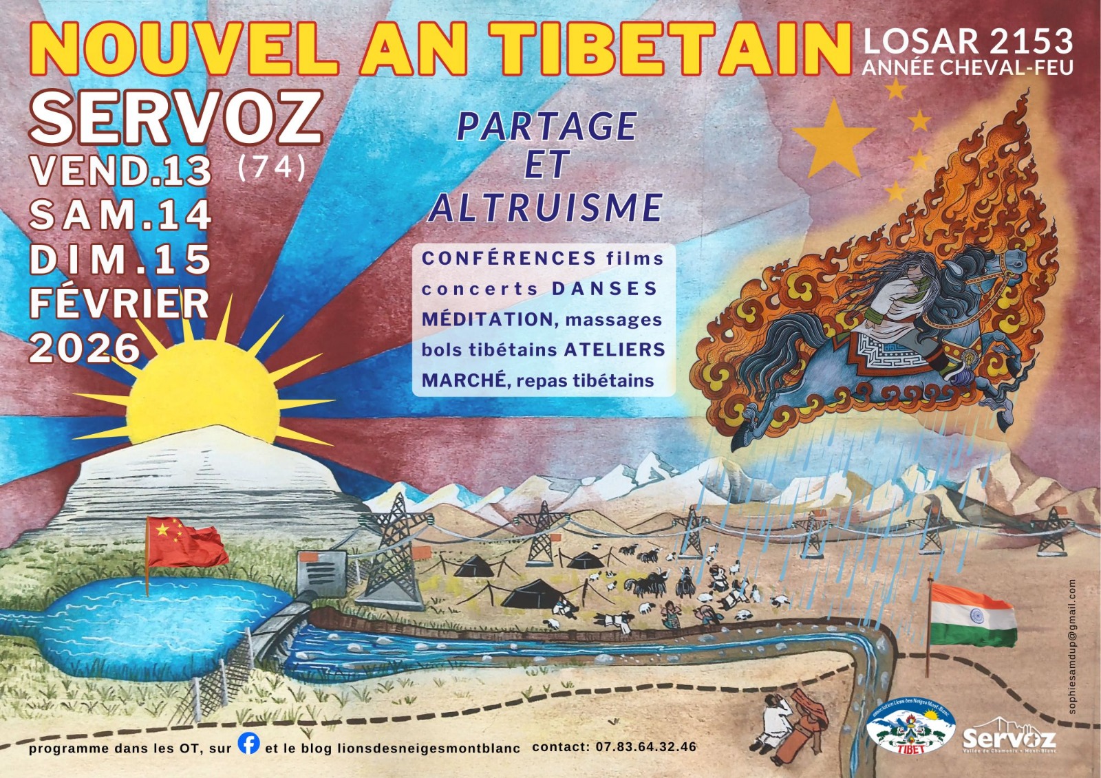 Nouvel an Tibétain, pendant 3 jours à Servoz venez découvrir la culture tibétaine, Mandala de sable par 3 moines, marché tibétain, ateliers, repas, conférences, films, concerts ...