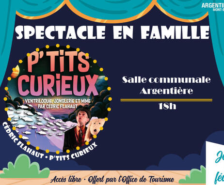 « P’tits curieux » par Cédric Flahaut - Ventriloquie, jonglerie et mime - Spectacle tout public - Durée : 50 minutes.