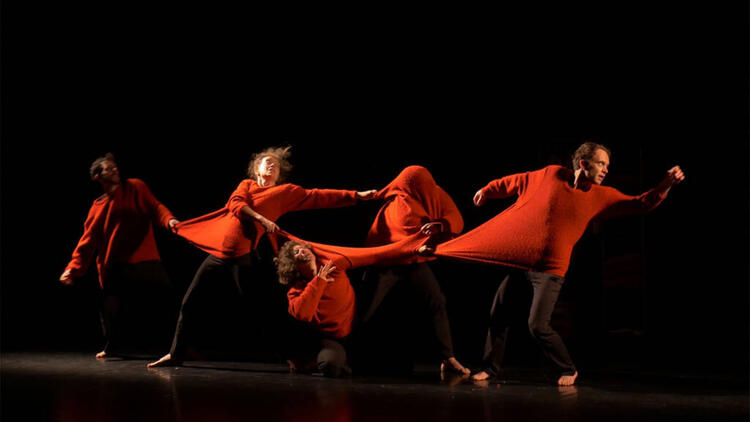 Jouant avec l’enveloppement, la résistance, l’élastique, les comédiens évoluent en souplesse, créant des chorégraphies rocambolesques mais au message toujours limpide. Comme une seconde peau, le vêtement du quotidien vient figurer le jugement, l’inclusion, l’indifférence, le renfermement… et l’ouverture.