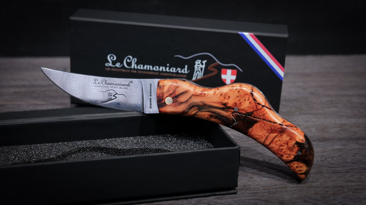 | Le couteau originaire de la vallée de Chamonix, conçu et réalisé par un véritable chamoniard ! Une gamme de couteaux pliants dont le manche représente la forme du Mont-Blanc et la pyrogravure la première ascension du sommet par Jacques Balmat en 1786. |