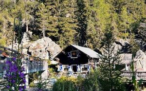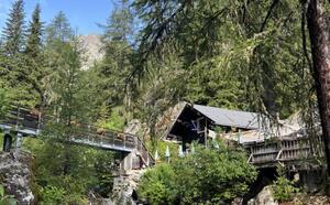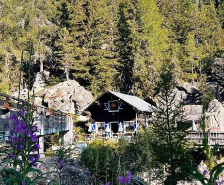 Identifiable de par ses volets bleus, la Buvette est un lieu unique surplombant la cascade de Bérard.