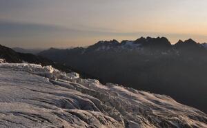 Nous rejoignons le bassin du Glacier d’Otemma. Nous prenons pied sur le glacier que nous remontons en pente douce sur plus de 8 kilomètres. La montée, quelque peu monotone sur la durée, se déroule dans une ambiance glaciaire magnifique. Au Col de Charmotane (3 015m), nous obliquons en direction de la Cabane des Vignettes (3 160m) dominant les glaciers du secteur. Nuit à la Cabane.